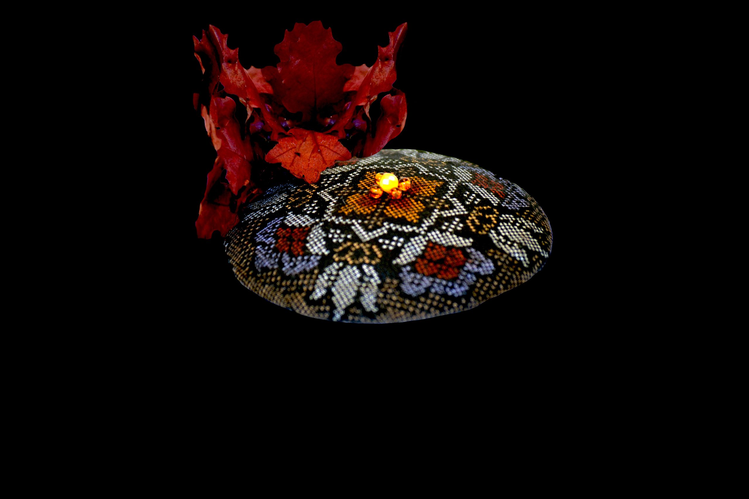 Roble es un casquete Daphne caracterizado porque sobre la base de seda O. Tsumugi se posan hojas de roble preservadas y teñidas, símbolo de fuerza, arraigo y eternidad. El toque final lo ponen pequeñas bolas de ámbar que centellean como frutos de un bosque encantado