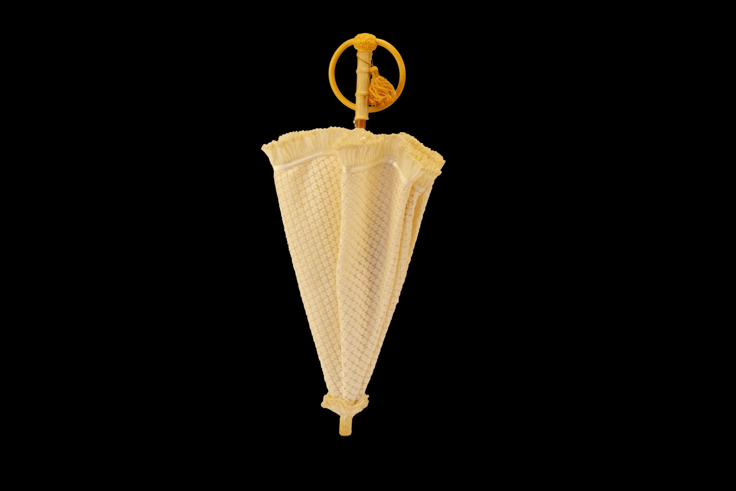 Su ligereza, su forro de muselina de algodón y su delicado acabado en puntilla evocan tardes de verano del brazo de un caballero, pero también días de boda o paseos entre glicinas. Las perlas de agua dulce al final de cada varilla no están ahí solo por elegancia, sino como recordatorio de que incluso lo más frágil puede perdurar si se cuida con amor.