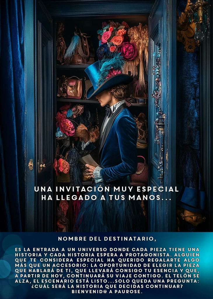 Es la entrada a un universo donde cada pieza tiene una historia y cada historia espera a protagonista. Alguien que te considera especial ha querido regalarte algo más que un accesorio: la oportunidad de elegir la pieza que hablará de ti, que llevará consigo tu esencia y que, a partir de hoy, continuará su viaje contigo. El telón se alza, el escenario está listo…Solo queda una pregunta: ¿cuál será la historia que decidas continuar? Bienvenid@ a PauRose.